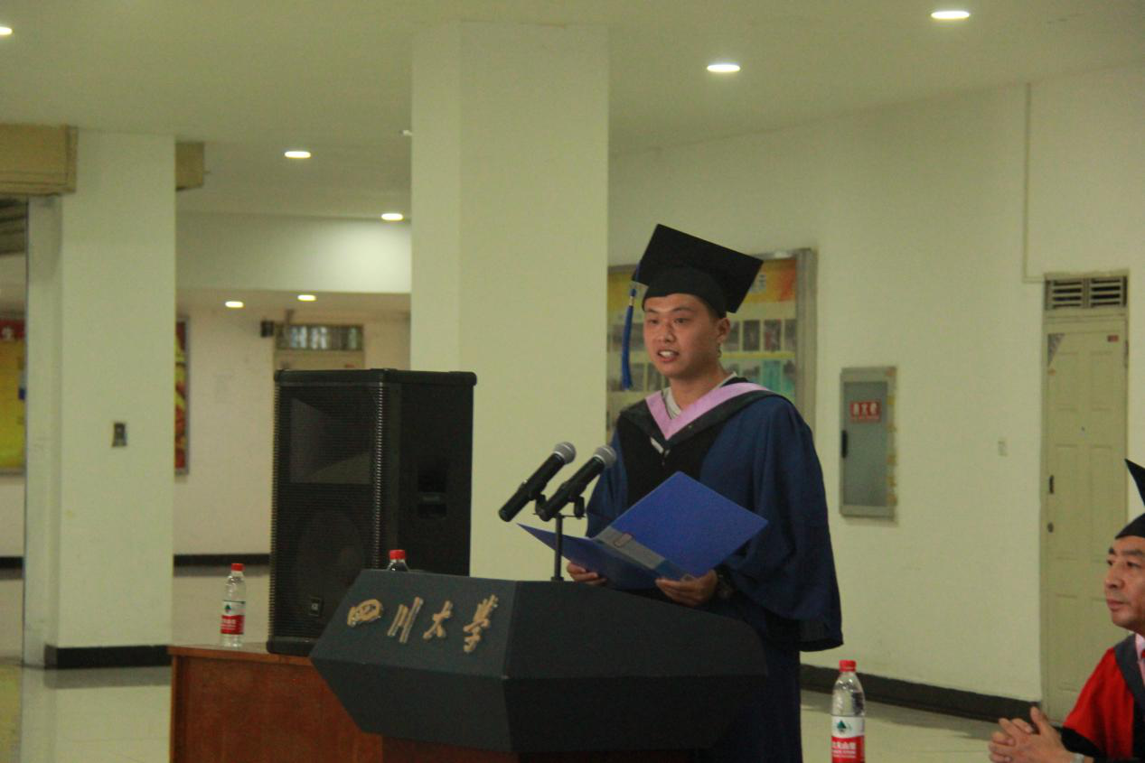 2015级毕业生代表简家俊同学代表全体毕业生以“师恩莫忘,继续前行”为主题,通过讲述自己三年体院生活的点滴感悟,对老师们表达了衷心的感谢,也向同窗三年的好友们表达了最真挚的祝福。