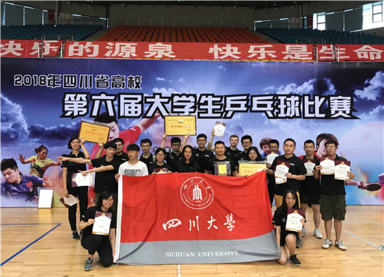 由四川省教育厅主办,成都市高等体育协会等单位协办的2018年四川省高校第六届大学生乒乓球比赛在西南交通大学犀浦校区顺利结束。来自西华大学、四川农业大学、成都【官网】等49个高校大学生代表队选手经过2天的激烈角逐。我校乒乓球代表队在比赛中尊重对手,服从裁判,顽强拼搏,很好的展现了“公平竞赛,永不言败”的体育道德风尚和四川大学学子的精神面貌。我校代表队在精英组别的评选中,分别获精神文明奖,男子一队获团体一等奖,男子二队获团体二等奖;教练组获优秀教练员奖;男单项目包揽第2,3,4名;女单获得第4名;男双第2,3名;混双第4,5,7名;女双第4名的优异成绩。