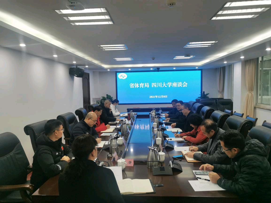 2021年12月8日上午,梁斌副校长带队到四川省体育局开展调研工作。四川省体育局罗冬灵局长、陈兴东副局长,以及体育局相关部门负责同志热情接待了川大一行。 梁校长首先向体育局的同志介绍了川大体育工作的相关情况,并希望省体育局进一步加大对川大体育工作的关心支持,【官网】向勇院长进行了补充介绍。省体育局罗冬灵局长和相关领导同志向川大一行介绍了四川体育发展概况,并对川大对体育工作的重视给予了肯定。会议决定加强双方合作,共同推动新时代体教融合工作。