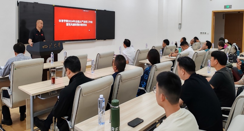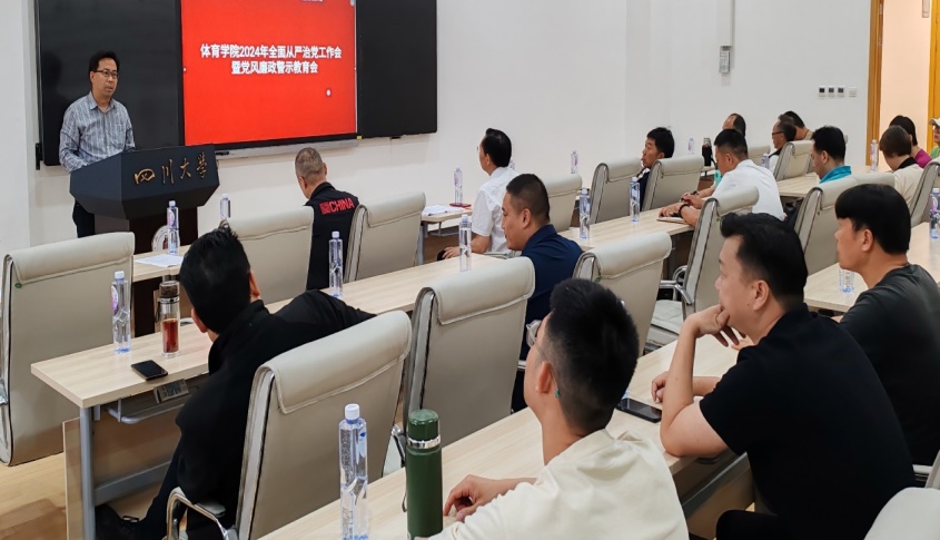 4月16日,【官网】在望江体育中心会议室召开2024年全面从严治党工作会暨党风廉政警示教育会议,学院班子成员、组织员、总支委员、党支部书记,全体中层干部、全体教练员参会。会议由院长向勇主持。