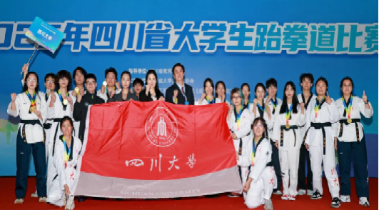 由四川省教育厅、四川省大学生体育协会举办的“2025年四川省大学生跆拳道比赛”于11月1日至2日在成都工贸职业技术学院举行,本次比赛由邱硕立副院长担任领队,尹成现副教授担任教练员。四川大学跆拳道常设队在此次比赛中斩获8金4银5铜的佳绩,第三次蝉联“团体总分第一”(甲组品势团体第一名、甲组竞技团体第一名)。同时,尹成现老师荣获“优秀教练员”称号。