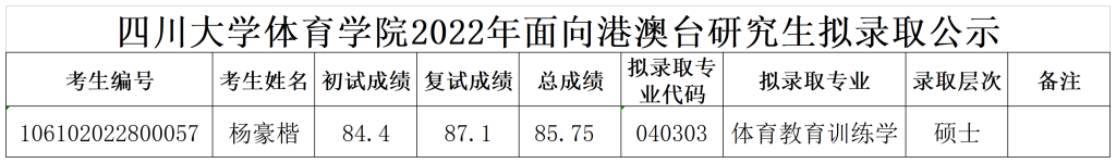 四川大学体育科学研究所2022年硕士研究生拟录取名单公示