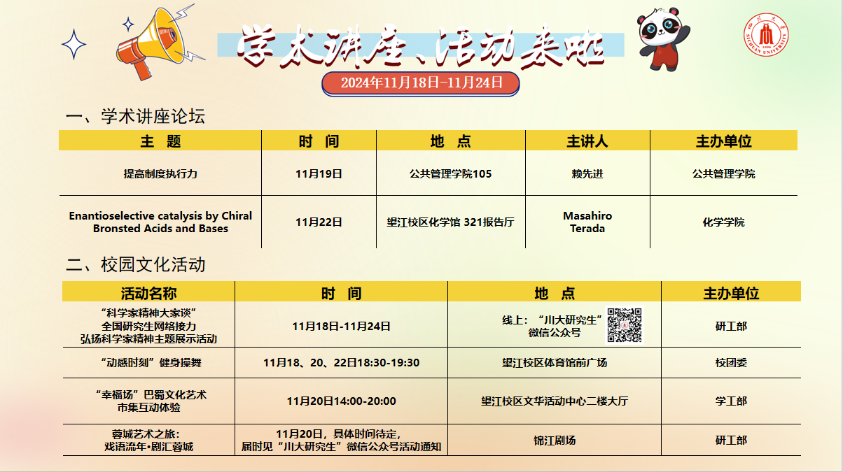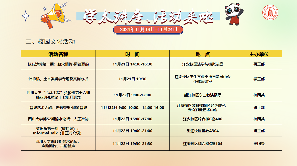 学术讲座及校园文化活动预告(11月18-24日)