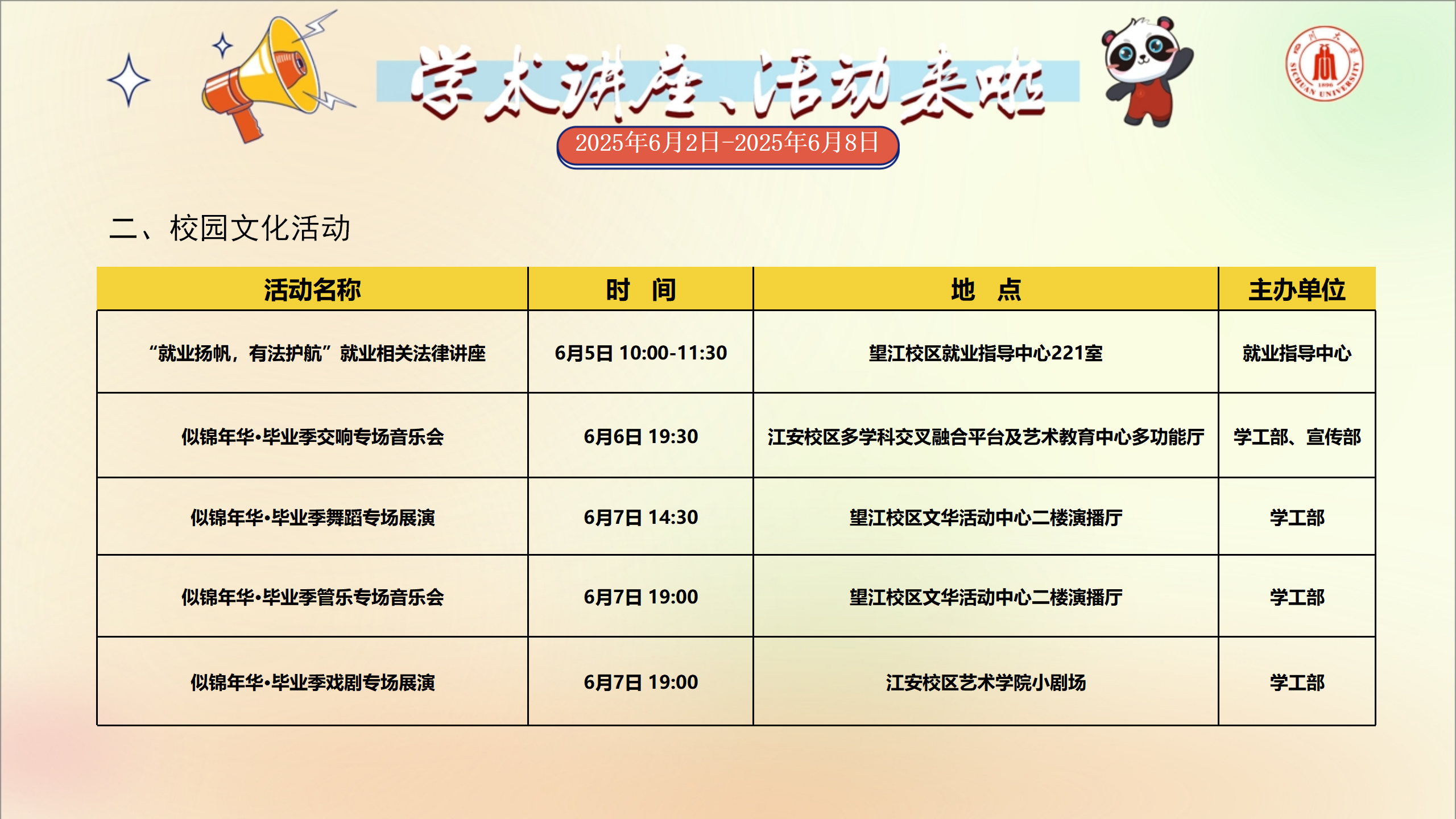 学术讲座及校园活动文化预告(6月2日-6月8日)