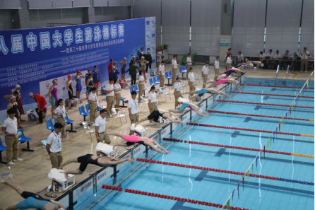 2018年11月29日至12月5日,第十八届中国大学生游泳锦标赛暨第三十届世界大学生夏季运动会游泳项目选拔赛在武汉理工大学体育中心游泳馆顺利举行。包括北京大学、清华大学、上海交通大学、复旦大学、中山大学、同济大学在内的61所高校860余名运动员、教练员、领队等代表参加本次比赛。我校游泳队由【官网】正处级组织员荣文学教授担任领队,王晓均、曾宏广2位老师担任教练。学校共选派了14名队员参赛。