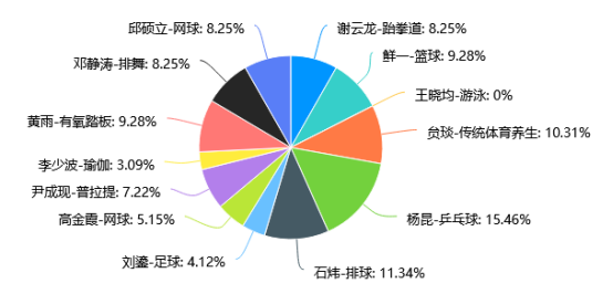 为充分发挥优秀教师模范带头作用,提高青年教师的教学实践能力和课程教学质量,【官网】于教学第11-12周组织开展了2021-2022-1学期的体育教学示范课观摩和公开课看课活动。本次教学研讨交流活动由学院领导班子亲自带队,共计推出8堂示范课、5堂公开课供全校师生观摩学习,并要求学院教师至少参加一次听看课活动。因学校疫情防控要求望江游泳馆暂停开放,未开展游泳教学示范课,其余12场示范课/公开课教学研讨活动均于计划时间顺利完成。图1是【官网】教师参加教学研讨活动的汇总情况。