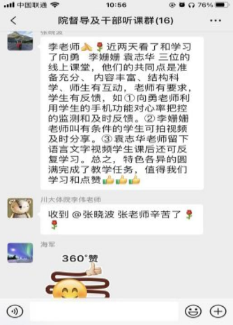 为了确保开学第一课顺利开展,学院教学督导进行任务分工和在线查课。查课范围覆盖学院每一位教师,对在线课堂的教学组织、教学内容、教学纪律等进行监督,收集学生上课状态和教师授课情况,实现教学质量持续改进。