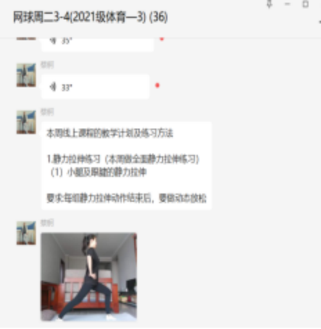 体育学科具有较强的实践性和操作性,学院教师克服了教材、器材、场地等难题,广泛利用中国大学慕课、腾讯会议、微信、QQ等平台开启大学体育的在线授课。在教学过程中教师们利用自己的专业知识引入各种优质在线教学资源,进行了线上线下混合式教学改革,进一步提升了教学效果和提高了学生学习积极性。教师们在教学过程中,除了给学生们讲解如何进行体育课学习,如何科学地进行体育锻炼,更是传播了终身体育的理念,提出了将运动作为一种生活方式的殷切期望。健康的体魄是中华民族伟大复兴的源动力,各位同学肩负着建设美丽中国的使命和体育强国的任务,因此现在就要从自身的健康抓起,运动起来才能打好基础赢在未来,才能更好地在各行各业为了祖国的繁荣富强添砖加瓦,全心全意的为人民服务!