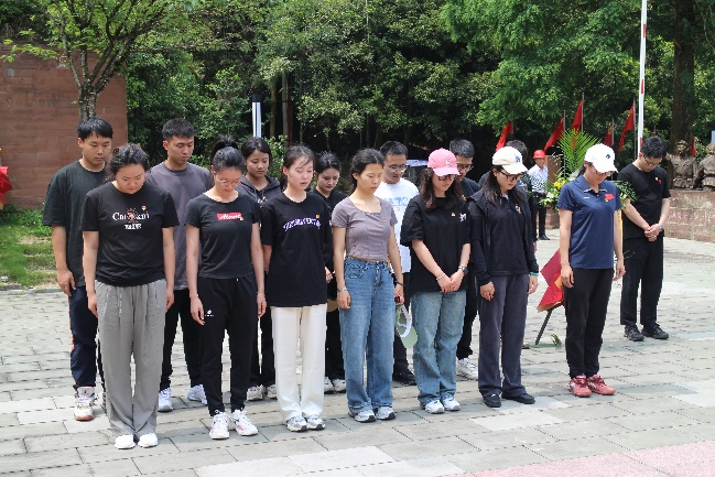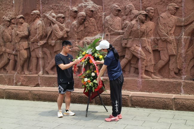 参观红色教育基地第一站我们到了缅怀仪式广场。面对庄严肃穆的革命烈士纪念碑,党员代表向烈士敬献花篮,全体党员集体向革命烈士默哀鞠躬致敬,专业硕士党支部书记黄雨带领全体党员重温了入党誓词,缅怀革命先烈,向革命先烈表达最崇高的敬意。