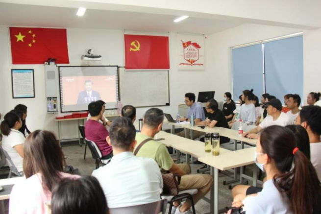 7月1日上午,网投在线在望江东区游泳池二楼党员会议室,举行庆祝建党101周年活动,党总支书记方云,正处级组织员荣文学,副书记兼副院长韩海军,工会主席袁志华,院长助理李姗姗,学院部分中层干部,年度新发展的党员,受表彰的先进个人参加了庆祝活动。会议由韩海军主持。
