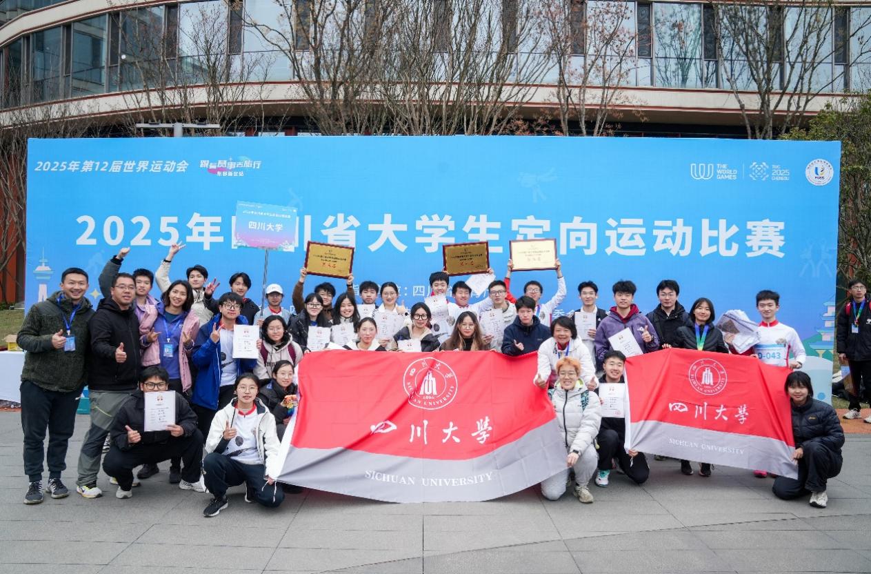 由四川省教育厅指导,四川省大学生体育协会和成都世界运动会执委办公室主办,四川大学承办的2025年四川省大学生定向运动比赛,于2025年3月29日至30在成都东部新区成功举办。在此次比赛中,四川大学定向代表队表现出色,最终以优异成绩夺得团体总分第一名。