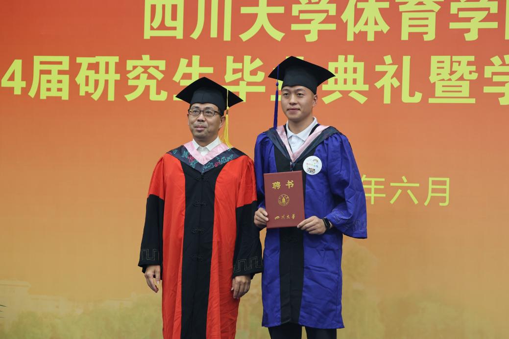 毕业生代表王语哲在发言中表示,三年前,我们从四面八方走来,万里挑一的缘分使我们百川赴海;三年间,我们走遍了川大校园,数以百计个日夜为我们海纳百川;三年后,我们将奔赴大江南北,四十四份力量汇聚在此让我们有容乃大。今后无论我们走到哪,势必牢记校训精髓,势必报答体院之恩,势必铭记老师教诲。未来的道路或许充满未知,但我们将怀揣着川大体院的精神和坚定前行的信念,勇敢迎接每一个挑战。