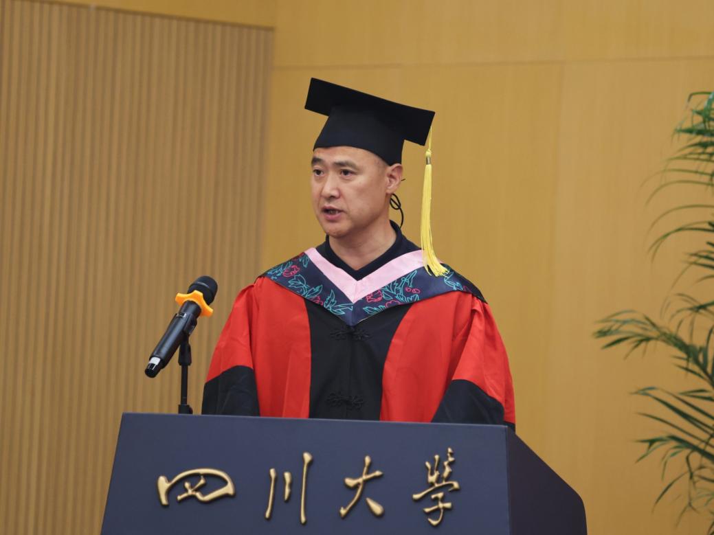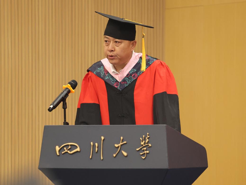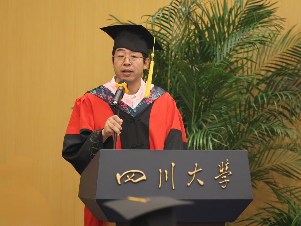 陈清教授作为导师代表向毕业生们送上了毕业祝福。他表示,今天的毕业典礼既是2024届毕业生川大学习生涯的终点,也是创造未来辉煌的开端,他提出四点毕业赠言与毕业生们共勉,一是保持上进心,做一个有理想有愿景的追梦人;二是保持责任心,做一个会工作有激情的人;三是保持良心,做一个堂堂正正的人;四是保持阳光心,做一个开开心心的人。